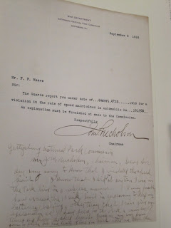 Some things never change. My supervisor, Ranger Levins, found a box of speeding violations down in the archives recently. We were able to take moment to look at a couple of them - primarily out of sheer curiosity. The explanations aren't much different than you'd get today on a traffic stop!