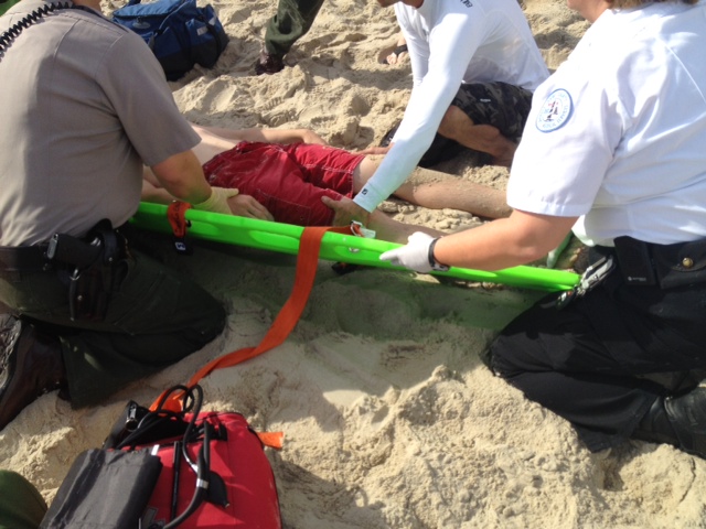 Monday, Mark and I were patrolling when a call came over for a trauma victim at Avon Pier. We ran code down the road and got on the beach at Avon Pier. As soon as we arrived we saw a 15 year old boy laying still on the beach. The boy was hit in his head by his boogie board when a wave crashed. The power of the wave caused the boogie board to knock him unconscious. He was pulled out of the water by his friends and guardians at the time. The Hatteras Island Rescue squad and their ambulance arrived on scene, checked the boy's vitals and other symptoms, then transported him to the hospital for further analysis because his head injury was severe.